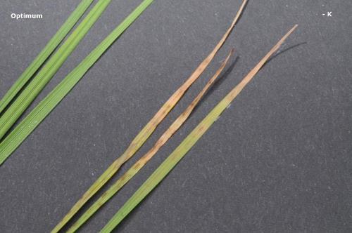 Kaliummangel (høyre)