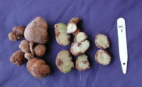 Ca-mangel kan også forårsake indre brunflekk og kolv i knollene. Det er ikke lett å skille symptomene.
