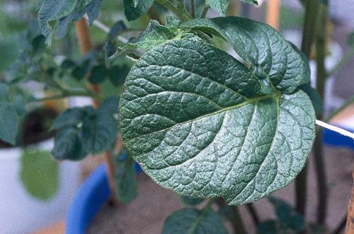 Kan bli forvekslet med kalsiummangel, som også påvirker vekstpunktet og forårsaker opprulling av bladene.