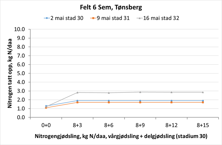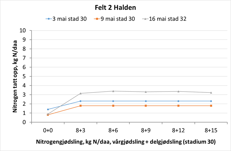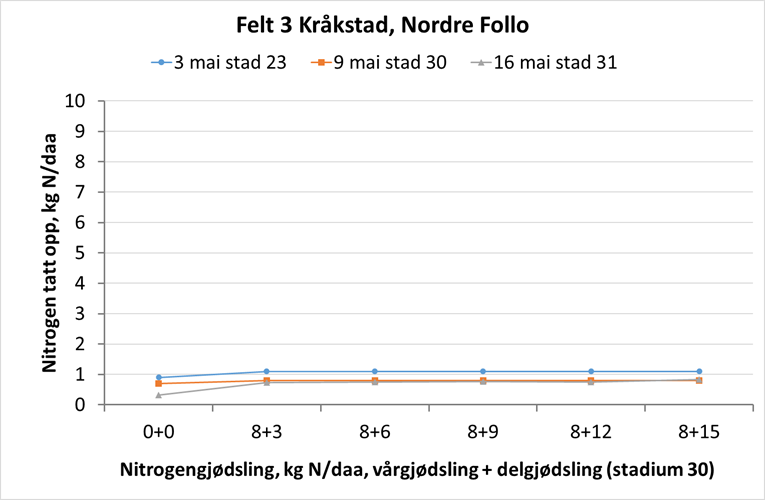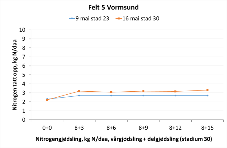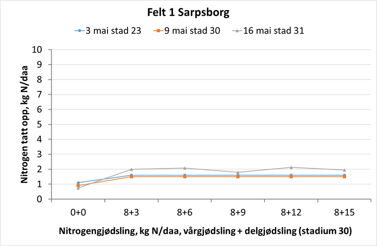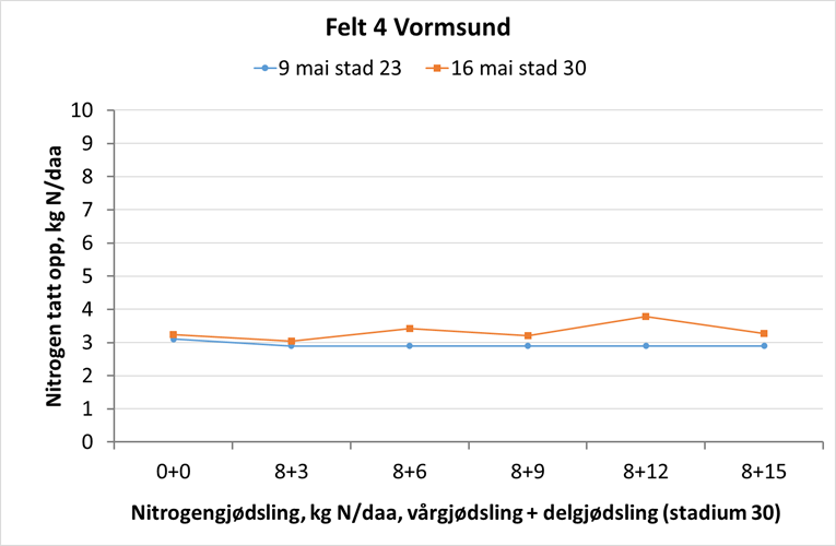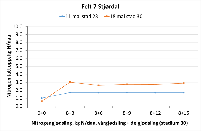 Gjennomgående har det vært lite opptak av nitrogen siste uka. Feltene har kommet til strekkingsperioden, enten helt i starten av eller et stykke ut i strekningsperioden. Den vedvarende tørken påvirker avlingspotensialet i negativ retning og for flere av åkrene er avlingspotensialet varig redusert.