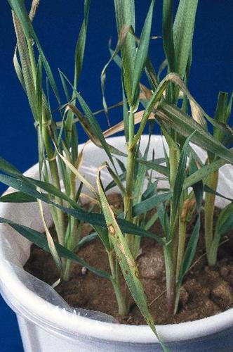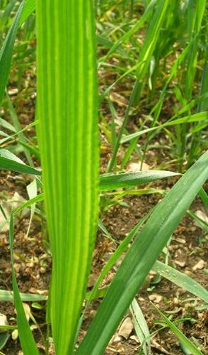 Mangel gir planter med blekere farge enn normalt, og bladene kan få et rødlilla skjær mens stilken blir gråaktig.