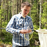 Martin Dalen, opprinnelig fra Larvik bosatt i Porsgrunn, forteller hvordan han i sin oppgave undersøker hvordan nyttedyret snylteveps finner verten sin ertevikler. - Fordi insektmidler i dag ikke gir effekt mot ertevikler, er prosjektet viktig for norsk erteproduksjon, sier Martin. Arbeidet er en del av et prosjekt hos Bioforsk Plantehelse, for å utvikle bærekraftige bekjempelsesmetoder med minimalt negative konsekvenser for nyttedyr.